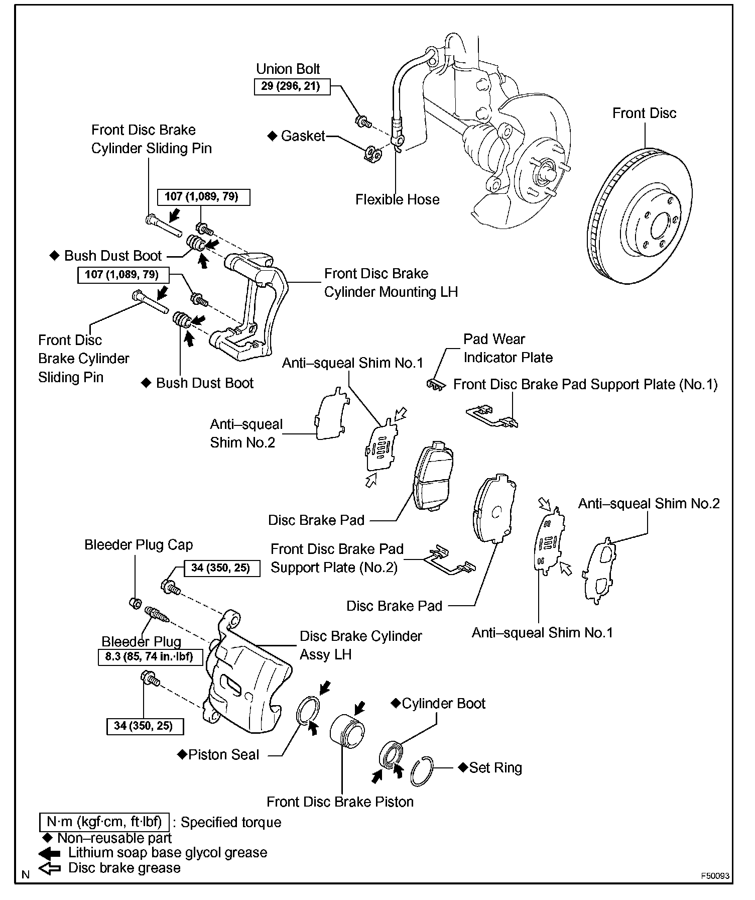a. Apply disc brake grease to each anti-squeal shim No.1.