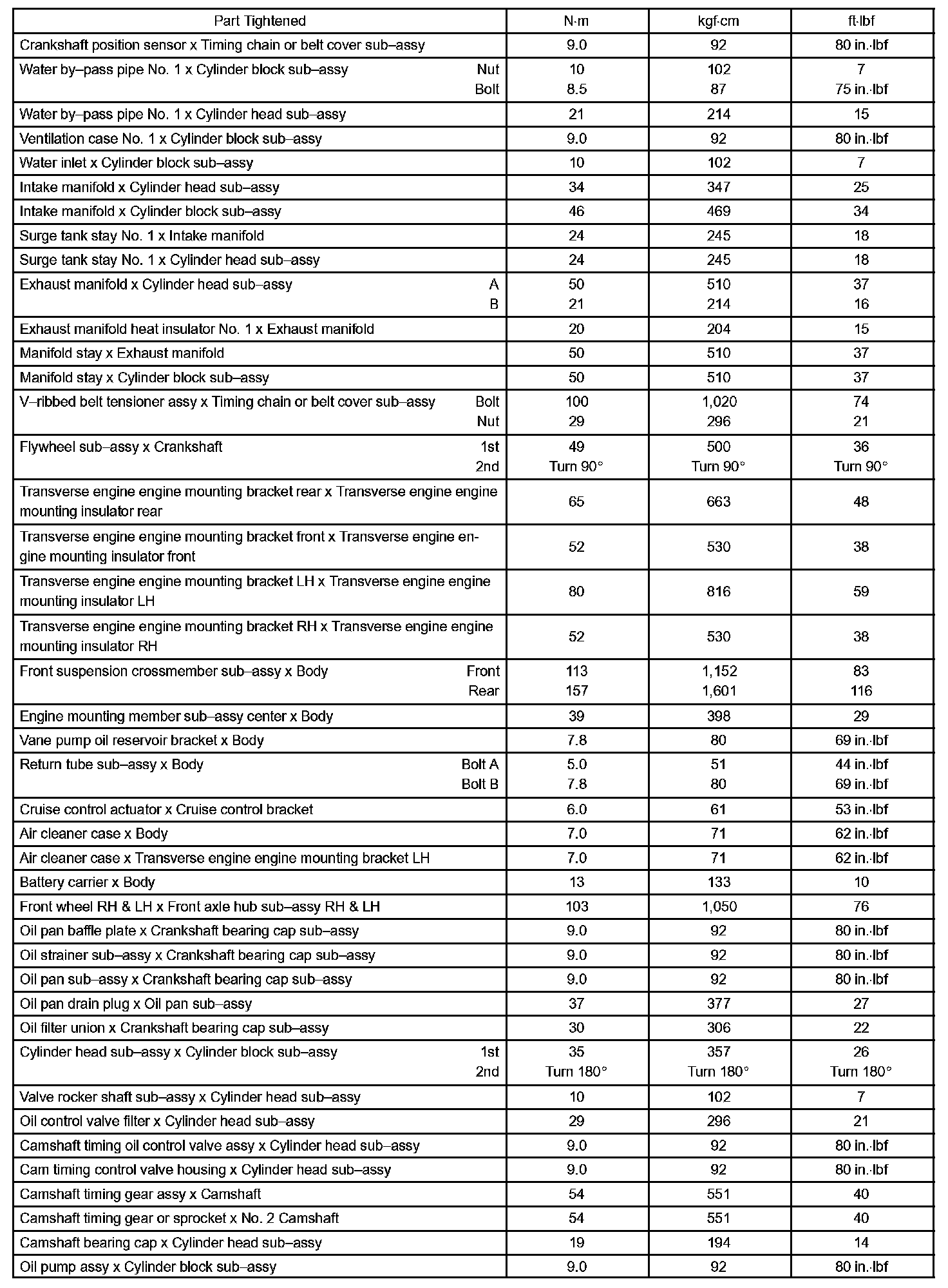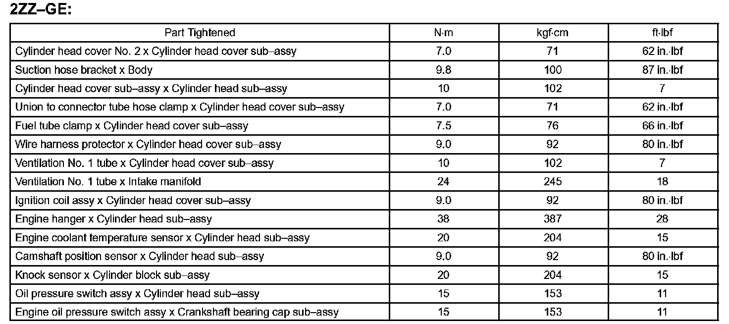 Engine Mechanical - Torque Specification Part 1: