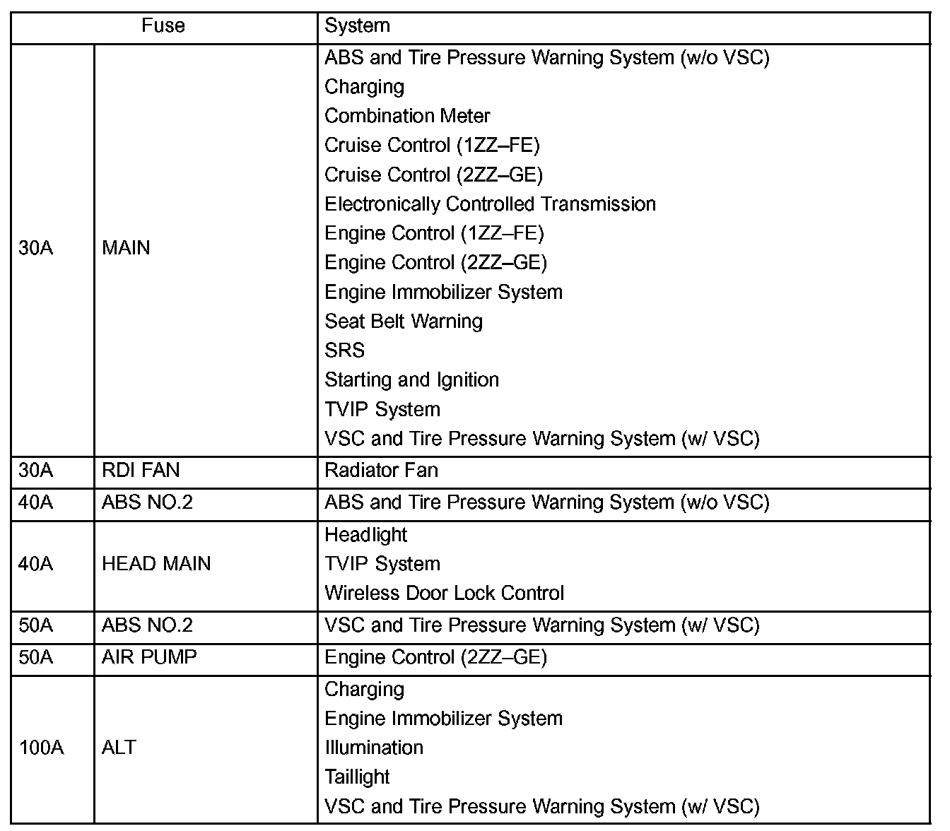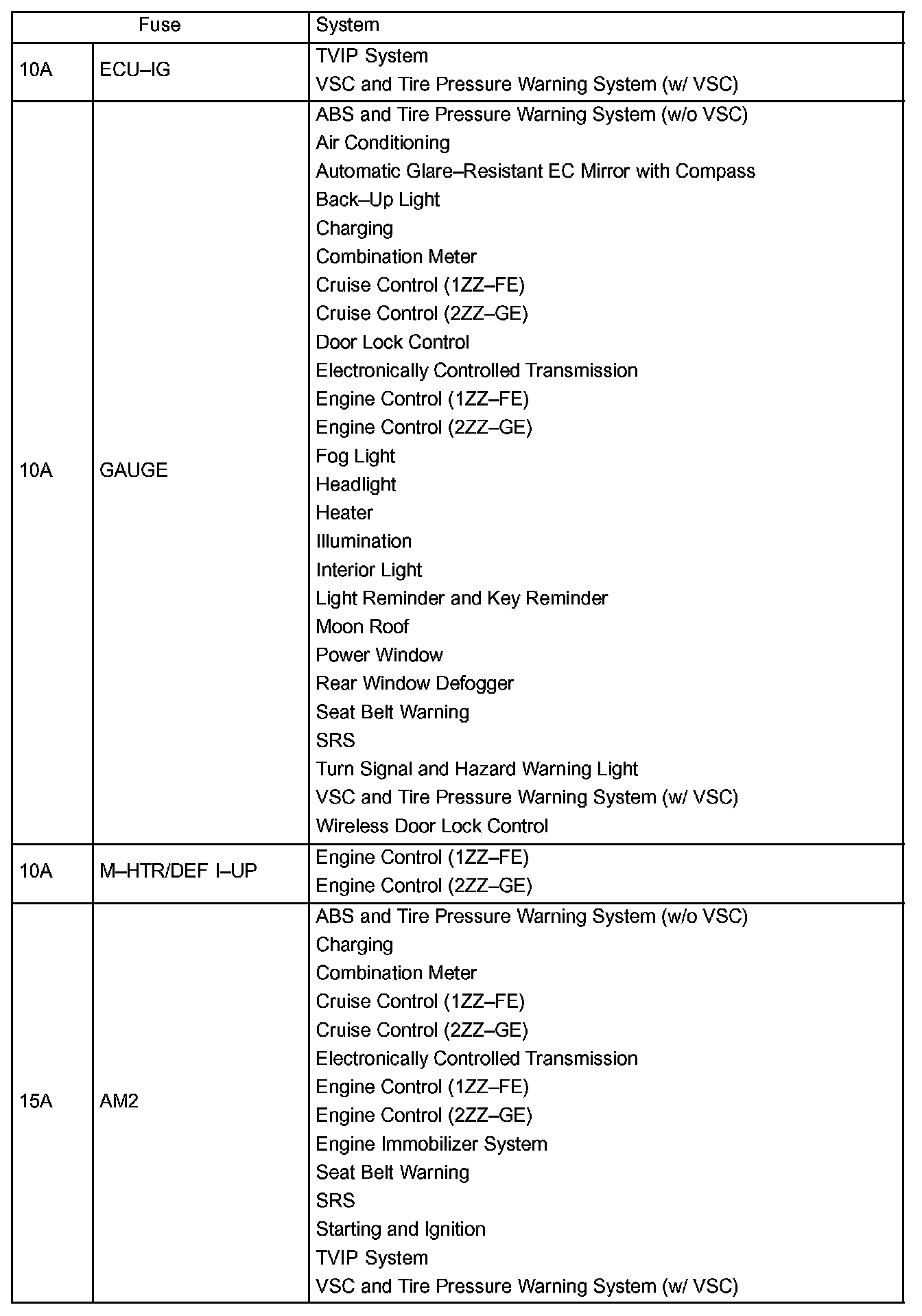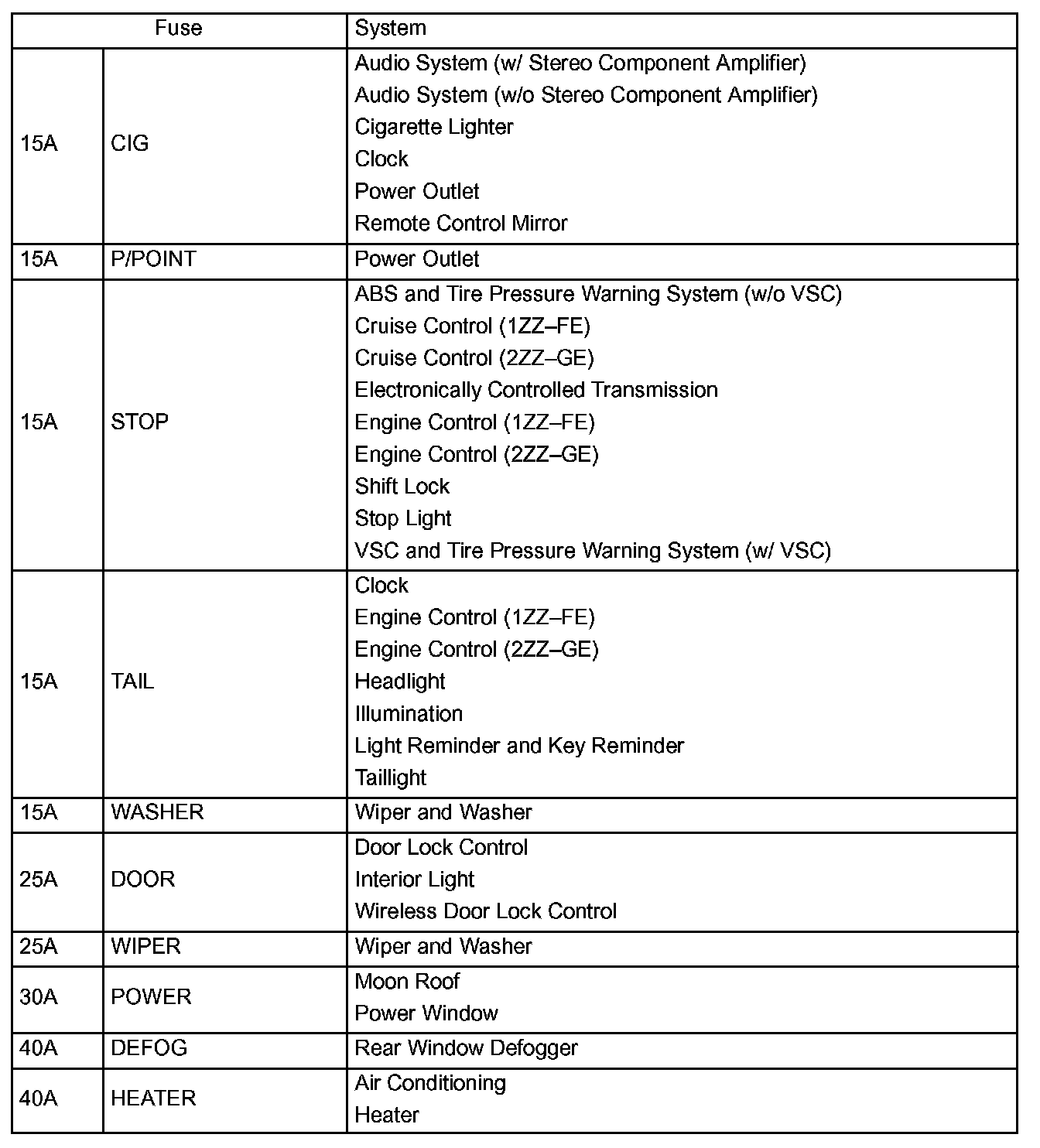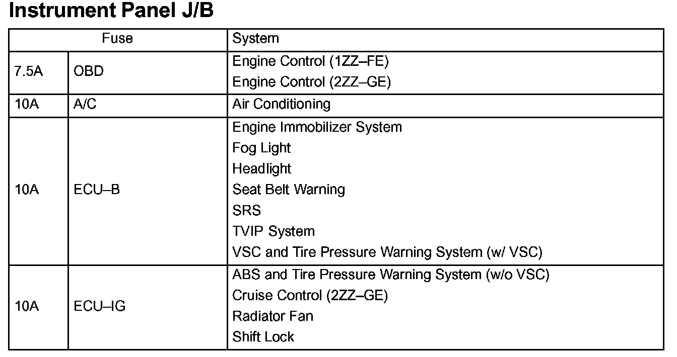 Interior Panel Fuse Identification