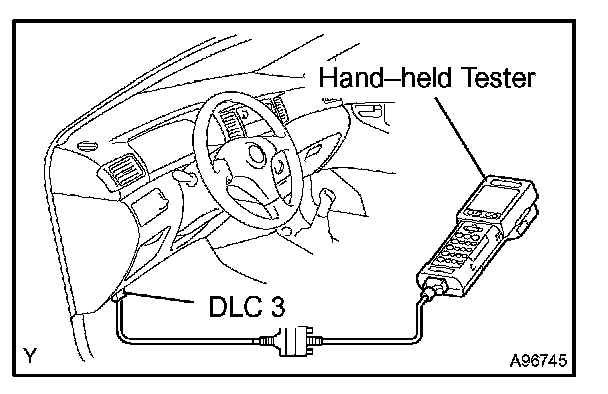 When troubleshooting OBD II (On-Board Diagnostics) vehicles, a hand-held tester or OBD II scan tool (complying with SAE J1987) must be connected to the DLC3 (Data Link Connector 3) of the vehicle. Various data in the vehicle's ECM (Engine Control Module) can be then read.