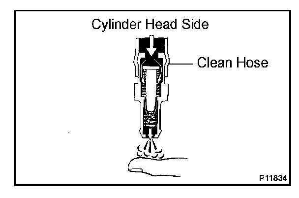 2. Blow air into the cylinder head side and check that the air passes through freely.