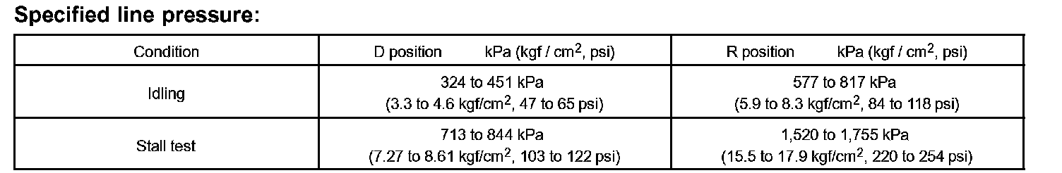 8. Depress the accelerator pedal all the way down. Quickly read the highest line pressure when engine speed reaches stall speed.