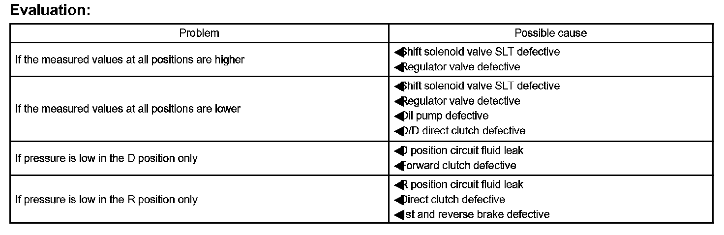 - Perform the test at the normal operating ATF (Automatic Transmission Fluid) temperature 50 to 80 °C (122 to 176 °F).