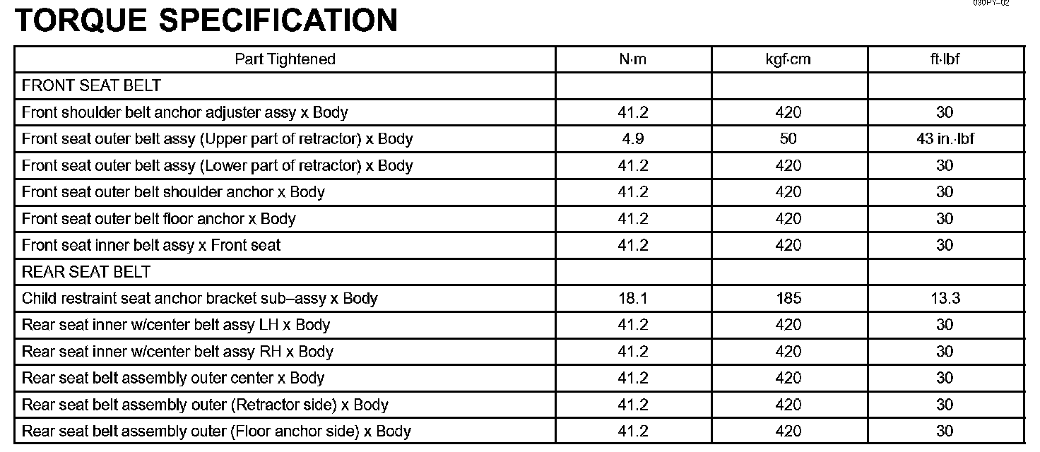 Seat Belt - Torque Specification: