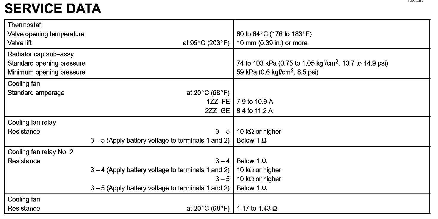 Cooling - Service Data: