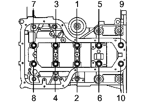 Using SST, retighten the 10 bolts to the specified torque in several passes in the sequence shown.
