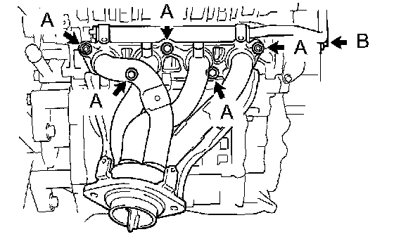 Install a new gasket and the exhaust manifold with the 4 bolts and 2 nuts.