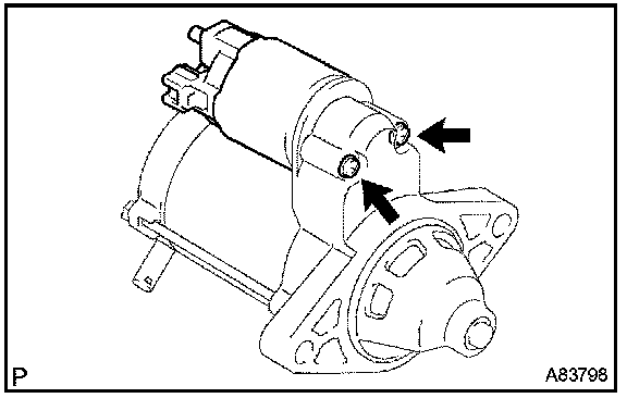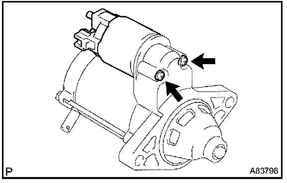 b. Remove the 2 screws which are used to secure the magnet switch to the starter drive housing.