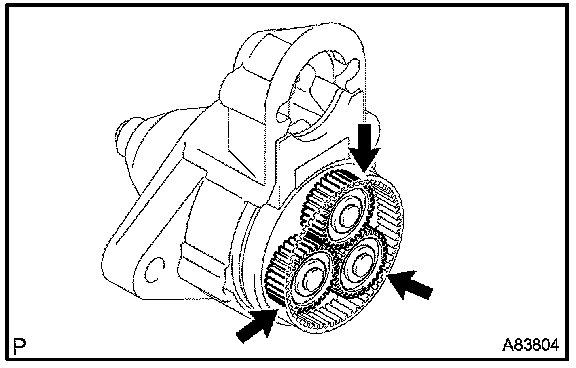 1. Check the gear teeth on the planetary gear, internal gear and starter clutch for wear or damage.
