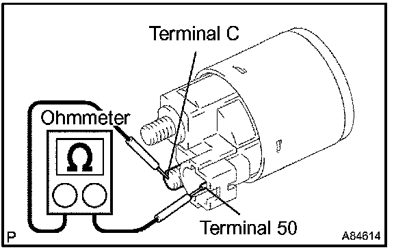 1. Using an ohmmeter, check that there is resistance between terminals 50 and C.