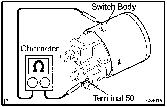 2. Using an ohmmeter, check that there is resistance between terminal 50 and the switch body.