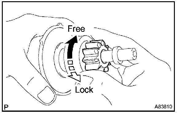 1. Turn the clutch pinion gear clockwise, then check that it turns freely. Try to turn the clutch pinion gear counterclockwise, then check that it locks.