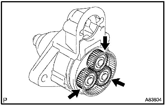 b. Install the 3 planetary gears to the starter center bearing clutch.