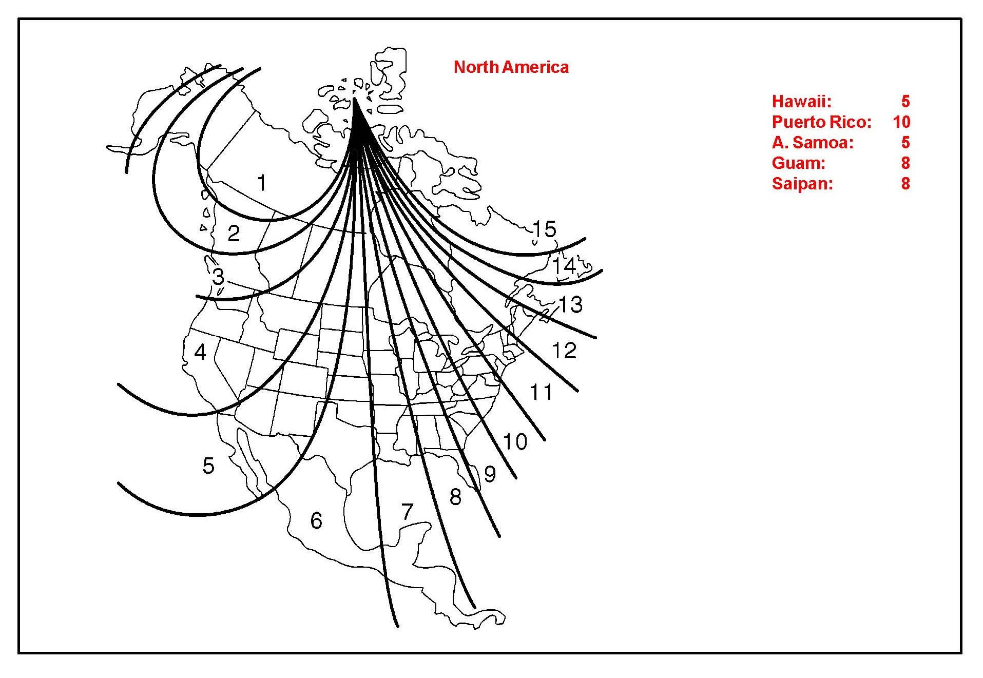 2. Push simultaneously both the right and left personal light switches for longer than 5 seconds until the zone number (1-15) appears on the display. Then push the right or left switch to select the number of the zone where the vehicle is located. See the map for zone reference.