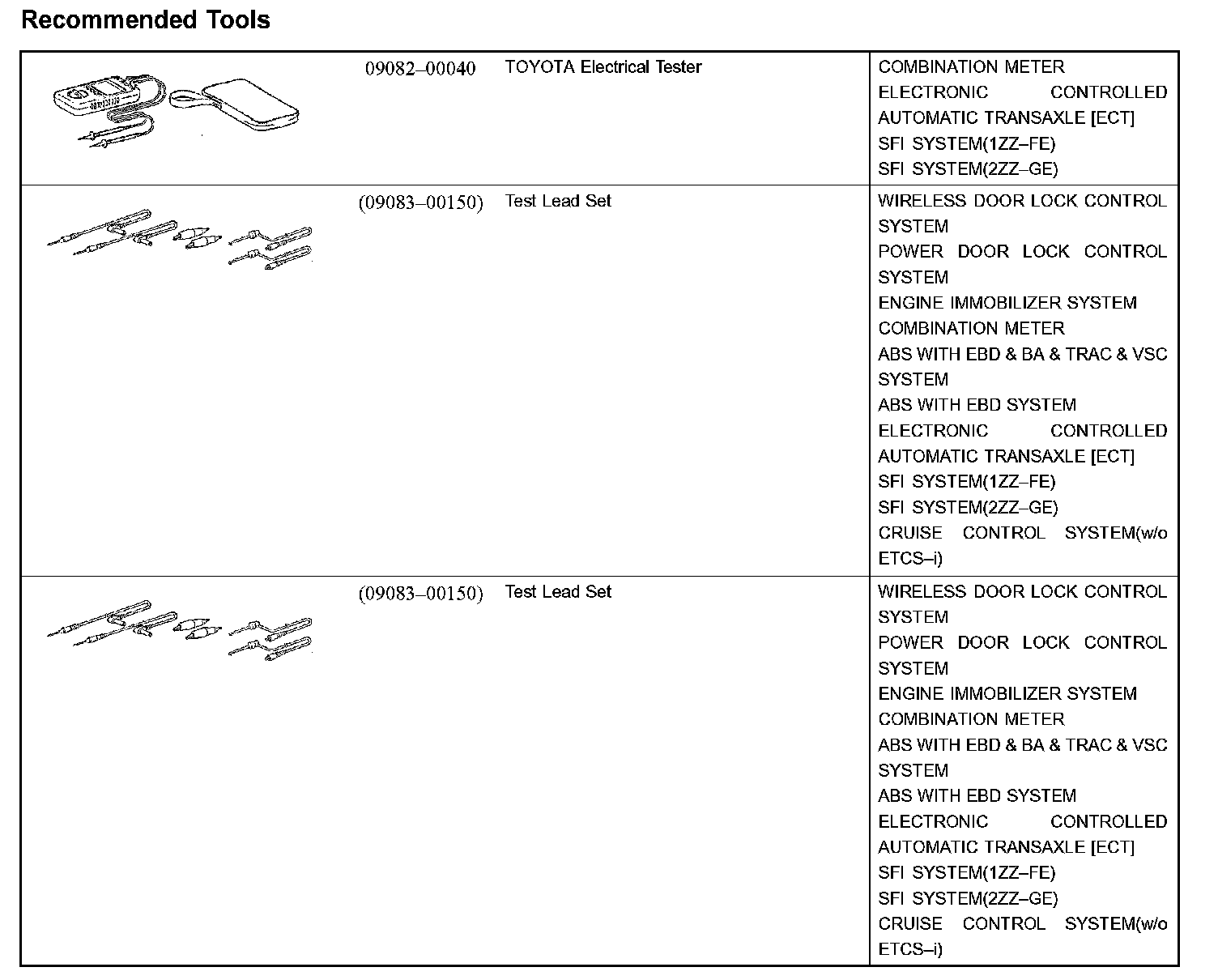 Diagnostics - Recommended Tools: