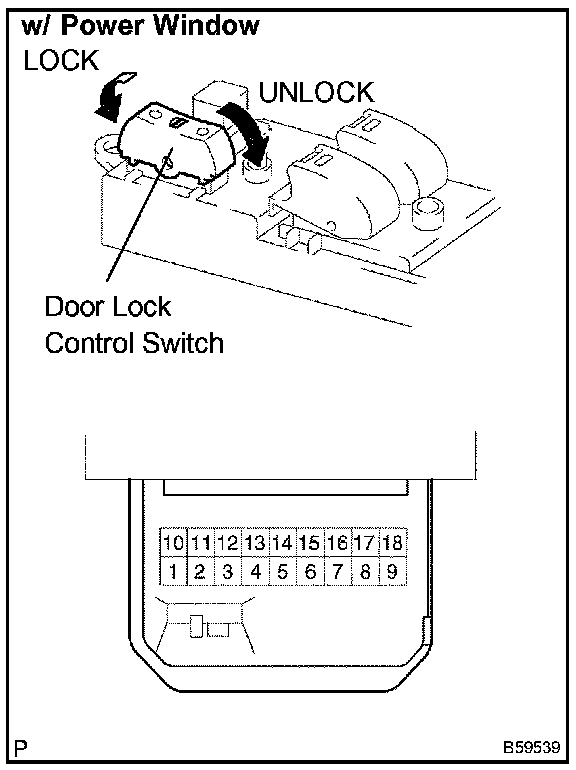 INSPECT POWER WINDOW REGULATOR MASTER SWITCH ASSEMBLY AND DOOR CONTROL SWITCH