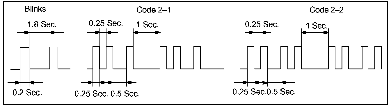 - When key code registration could not be performed on the automatic registration mode, code 2-1 is output from the security indicator and when inserting the already registered key, code 2-2 is output.