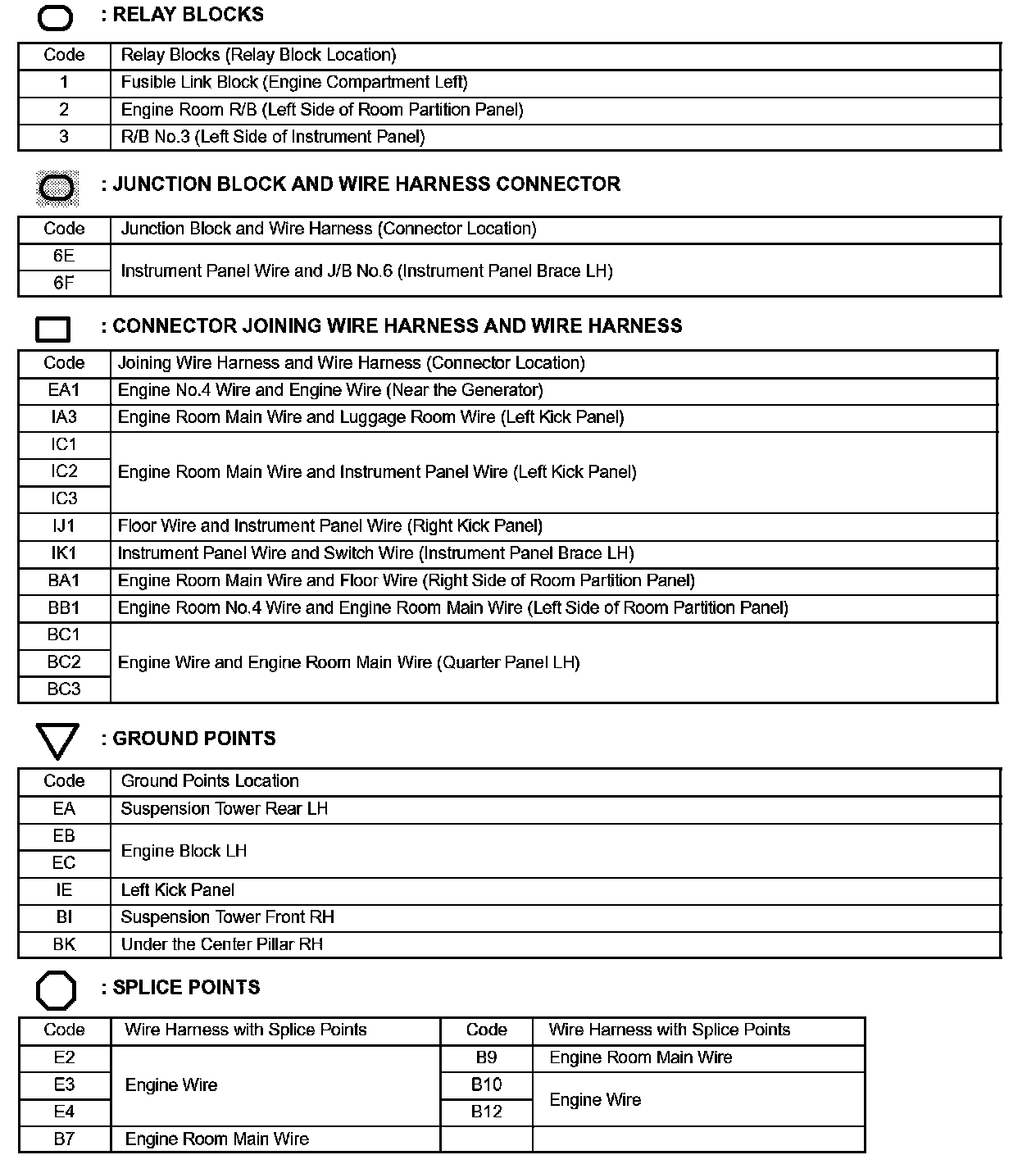 Locations: The locations of components, connectors, ground points, and splices referred to within these diagrams can be found at Vehicle Locations. Locations