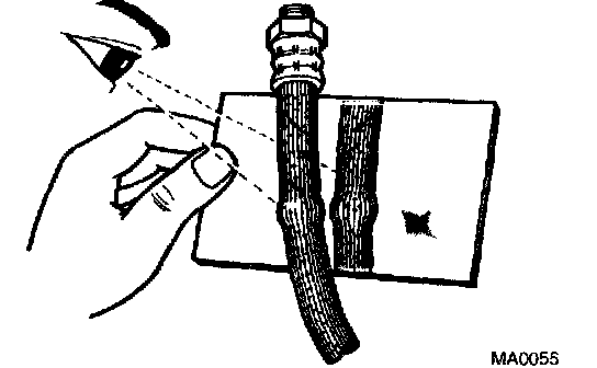 HINT: Check in a well lighted area. Check the entire circumference and length of the brake hoses using a mirror as required. Turn the front wheels fully right or left before checking the front brake.