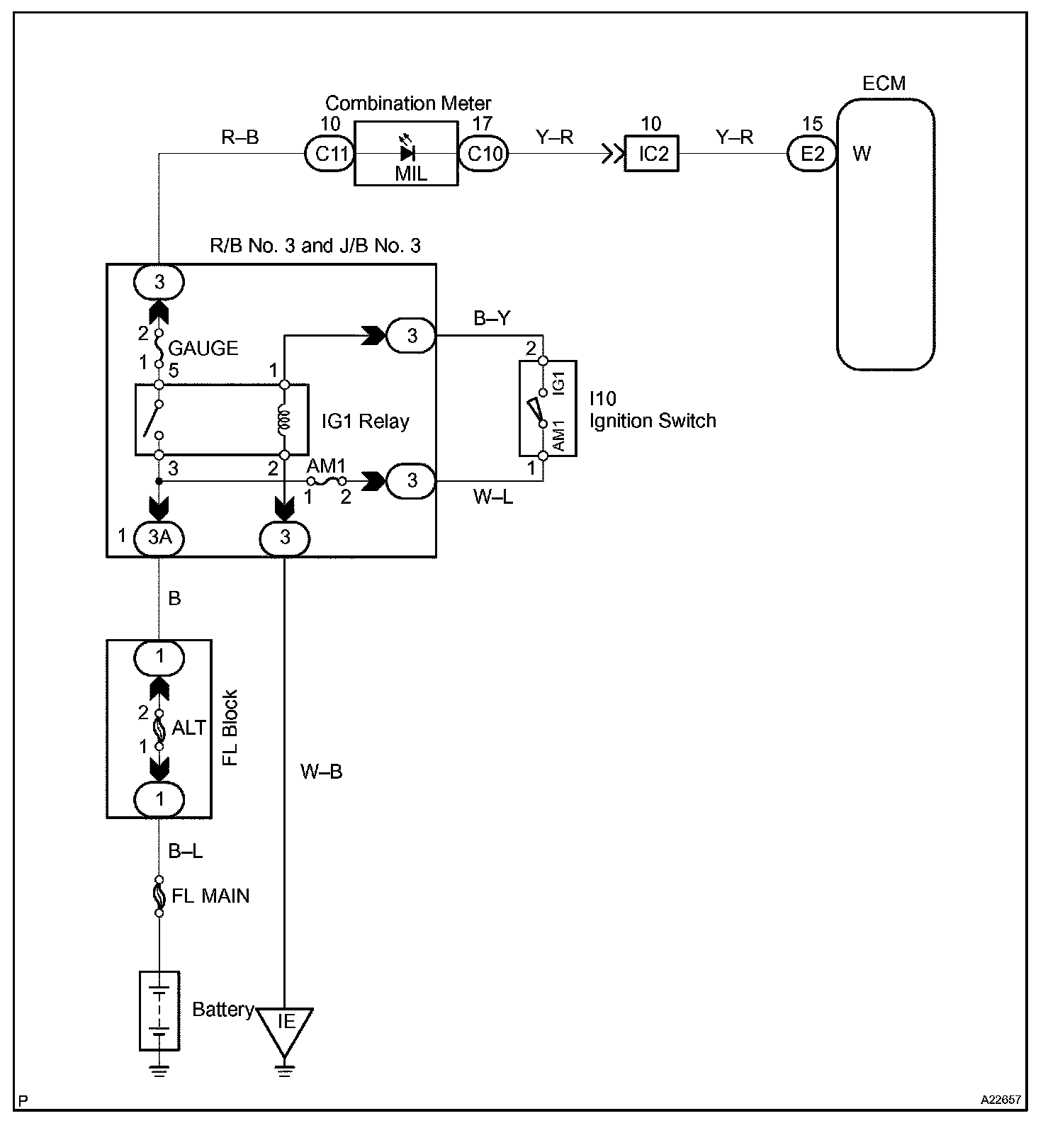 When the ignition switch is turned to ON, power is supplied to the MIL circuit, and the ECM provides the circuit ground that illuminates the MIL.