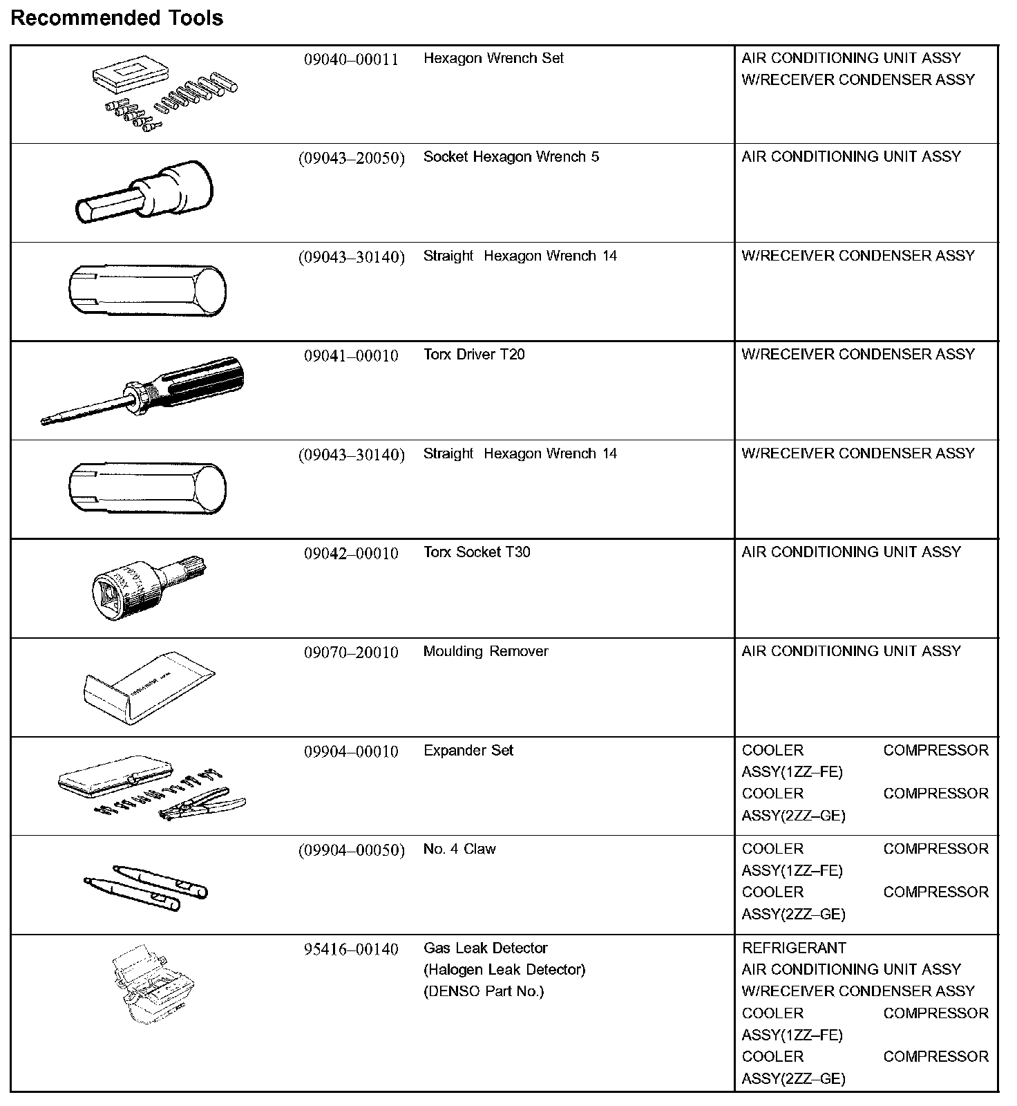 Heater & Air Conditioner - Recommended Tools: