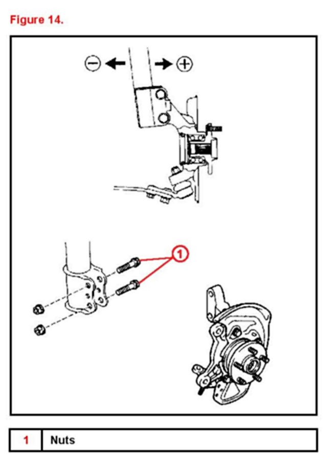 ^ The method of camber adjustment differs for different models, so please refer to the Repair Manual of the vehicle involved. (The information below are samples from the Sienna Repair Manual.)