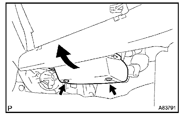 b. Deform the upper part of the glove compartment door assy to release the stoppers.