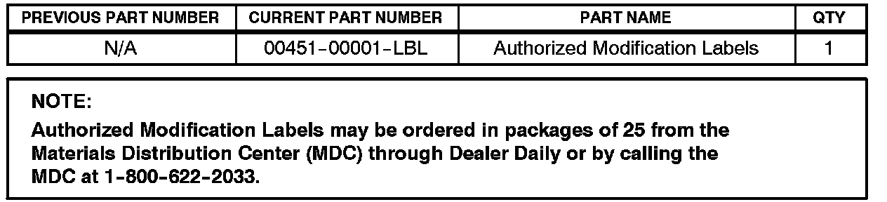 B. Enter the required information on the Authorized Modifications Label and affix it to the vehicle at the location shown in Figure 1. The Authorized Modifications Label is available through the MDC, P/N 00451-00001-LBL.