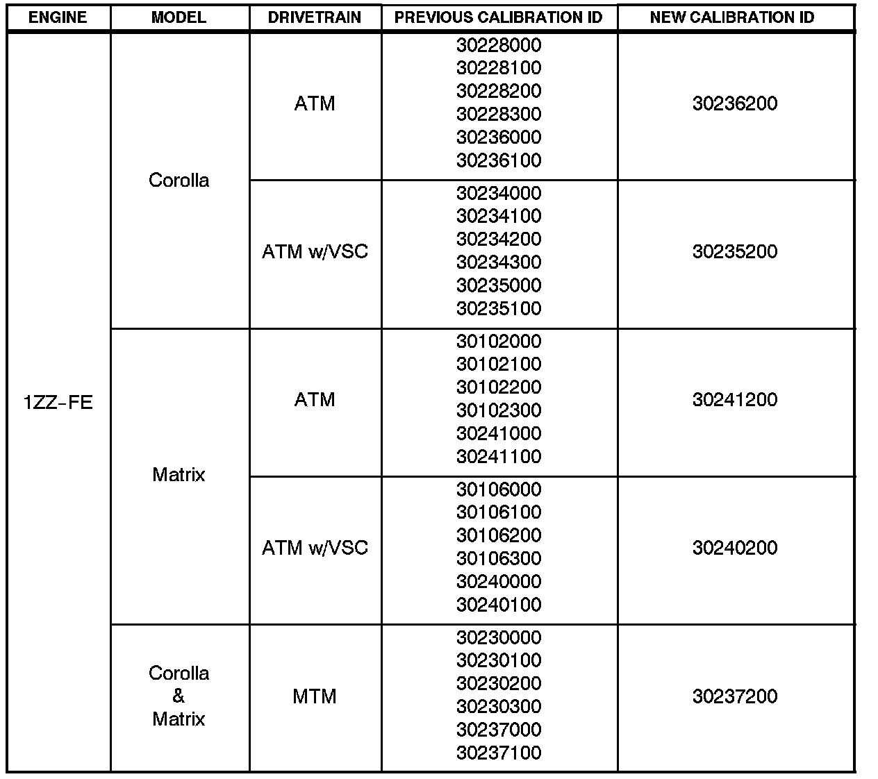 ^ 2005 - 2006 model year Corolla and Matrix (2WD) vehicles equipped with the 1ZZ-FE engine.