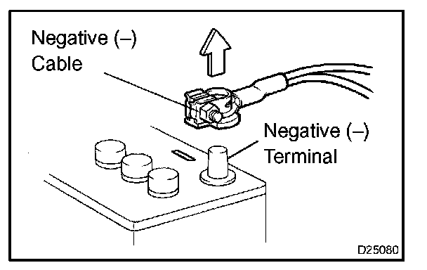 1. Before carrying out any work on the vehicle electronics, disconnect the battery negative (-) terminal cable to prevent component and wire damage caused by accidental short circuits.