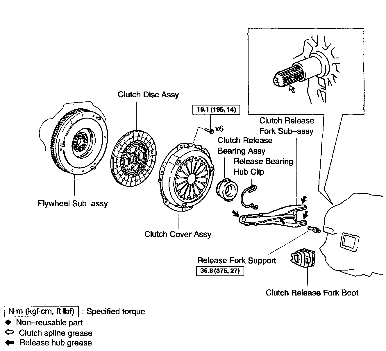 a. Remove the clutch release fork with clutch release bearing from the transaxle assembly.