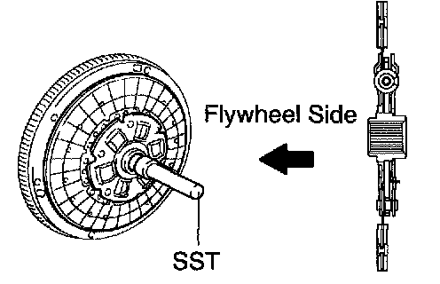 a. Insert SST in the clutch disc assembly, then insert them in the flywheel sub-assembly.