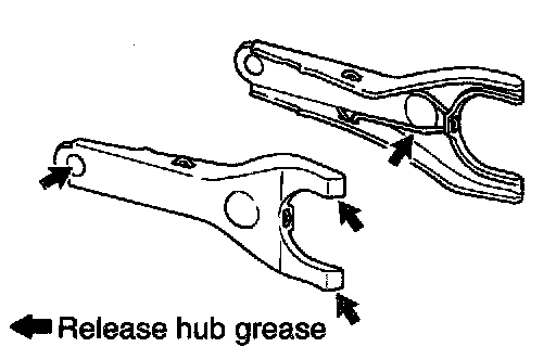 a. Apply release hub grease to the release fork and release bearing assembly contact, release fork and push rod contact and release fork pivot points.