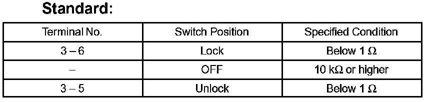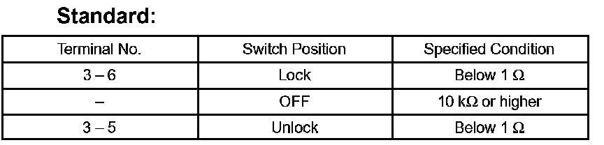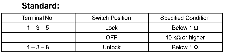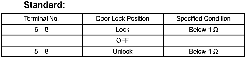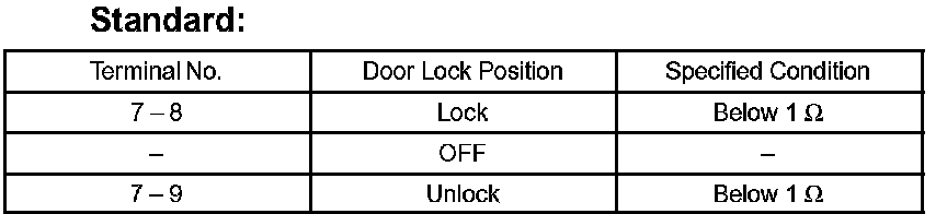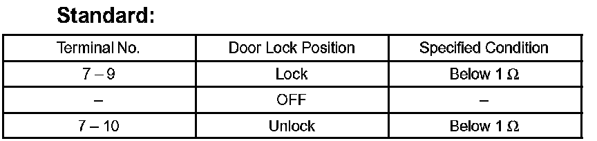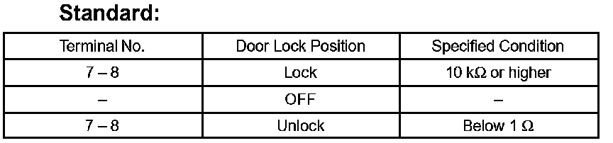 If the result is not as specified, replace the door lock assembly.