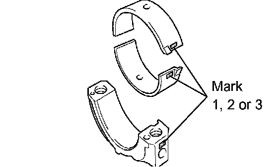 HINT: If replacing a bearing, select a new one with the same number as marked on the connecting rod. There are 3 sizes of standard bearings, marked "1", "2" and "3" accordingly.