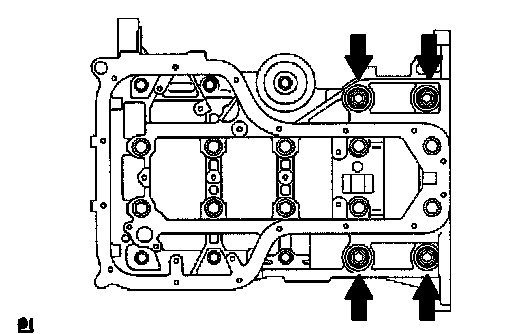 NOTICE: Be careful not to damage the contact surfaces of the cylinder block and bearing cap.