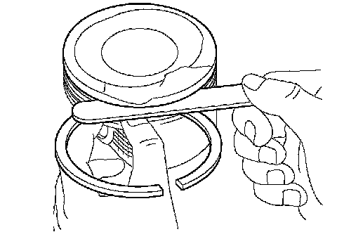 a) Using a feeler gauge, measure the clearance between the new piston ring and wall of the ring groove.
