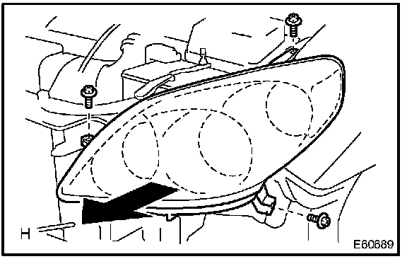 b. Pull out the headlamp assembly LH forward, then disconnect the bracket of body side.
