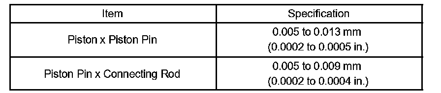 Piston pin outer diameter 20.004 to 20.016 mm (0.7876 to 0.7880 inch)