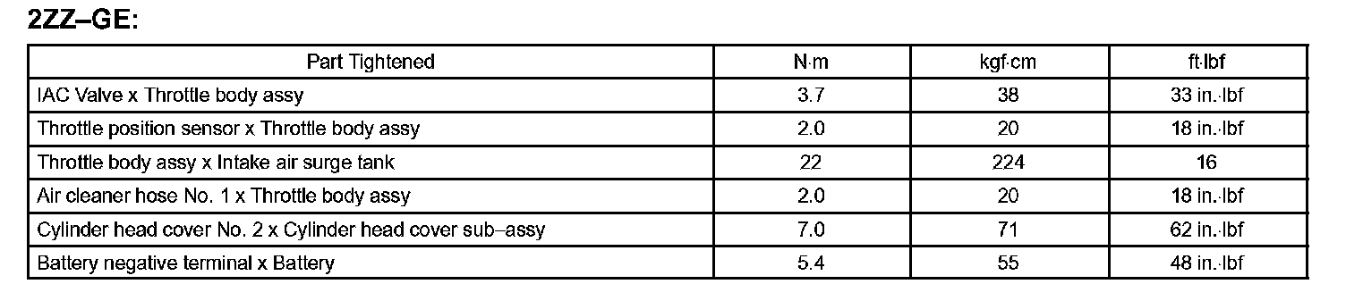 Engine Control System - Torque Specification: