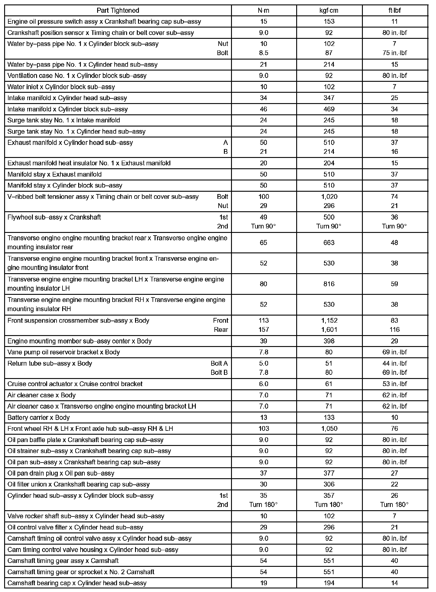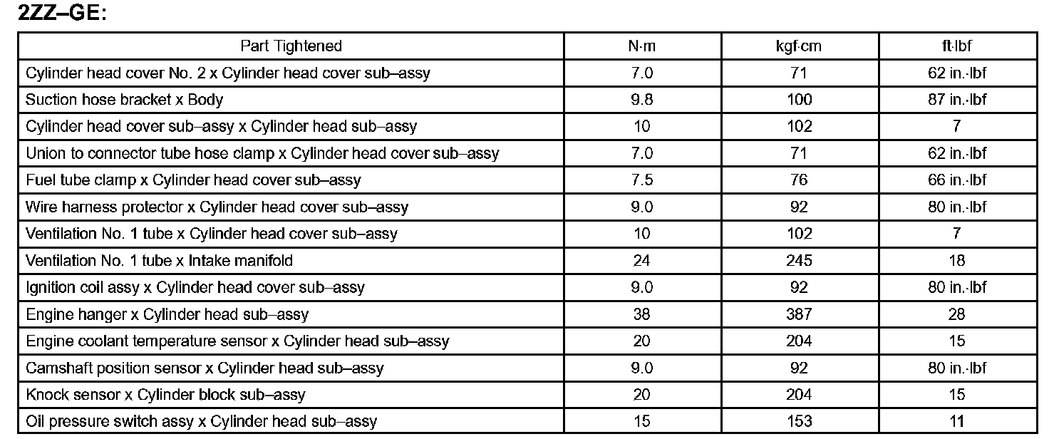 Engine Mechanical - Torque Specification Part 1: