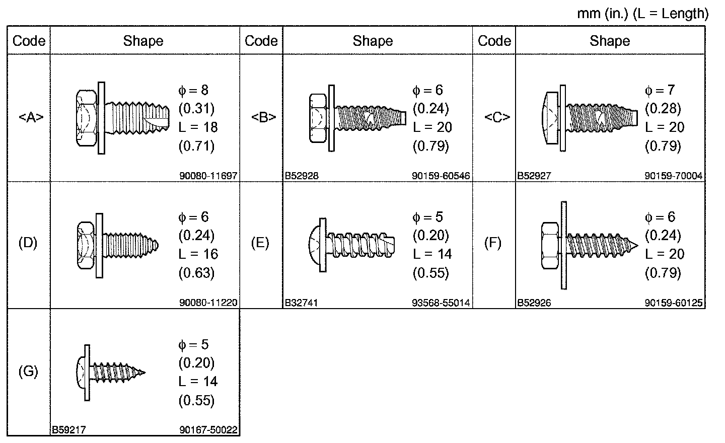 1. TABLE OF BOLT, SCREW AND NUT