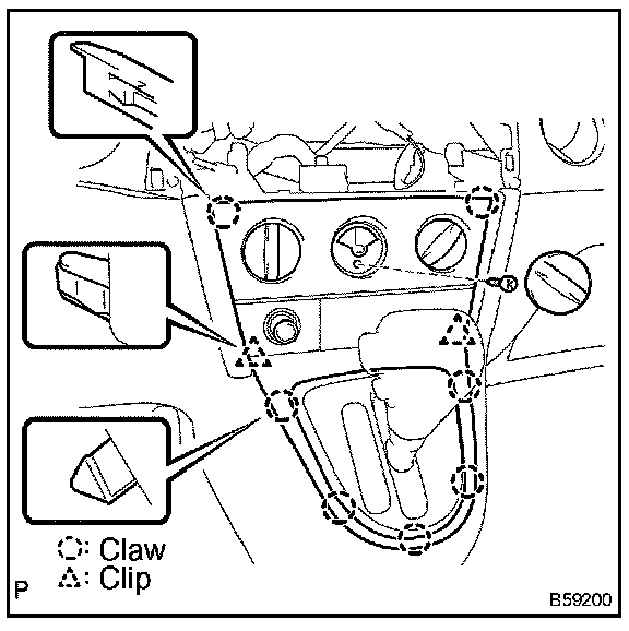 c. Using a screwdriver, disengage the claws, then remove the instrument panel finish lower center.