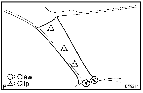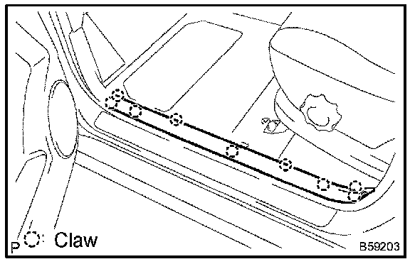 a. Using a moulding remover, disengage the 4 clips and 3 claws.