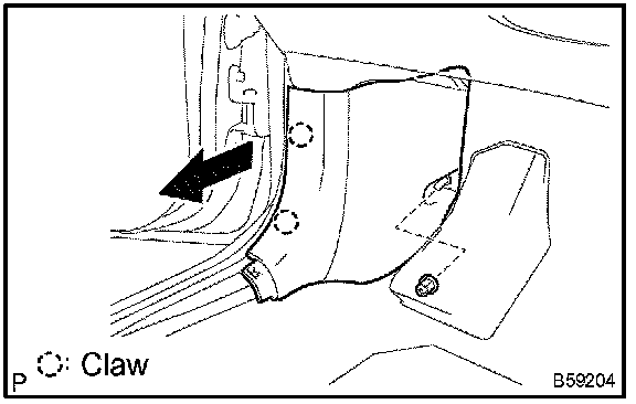 b. Disengage the 2 claws, then remove the cowl side trim board LH.