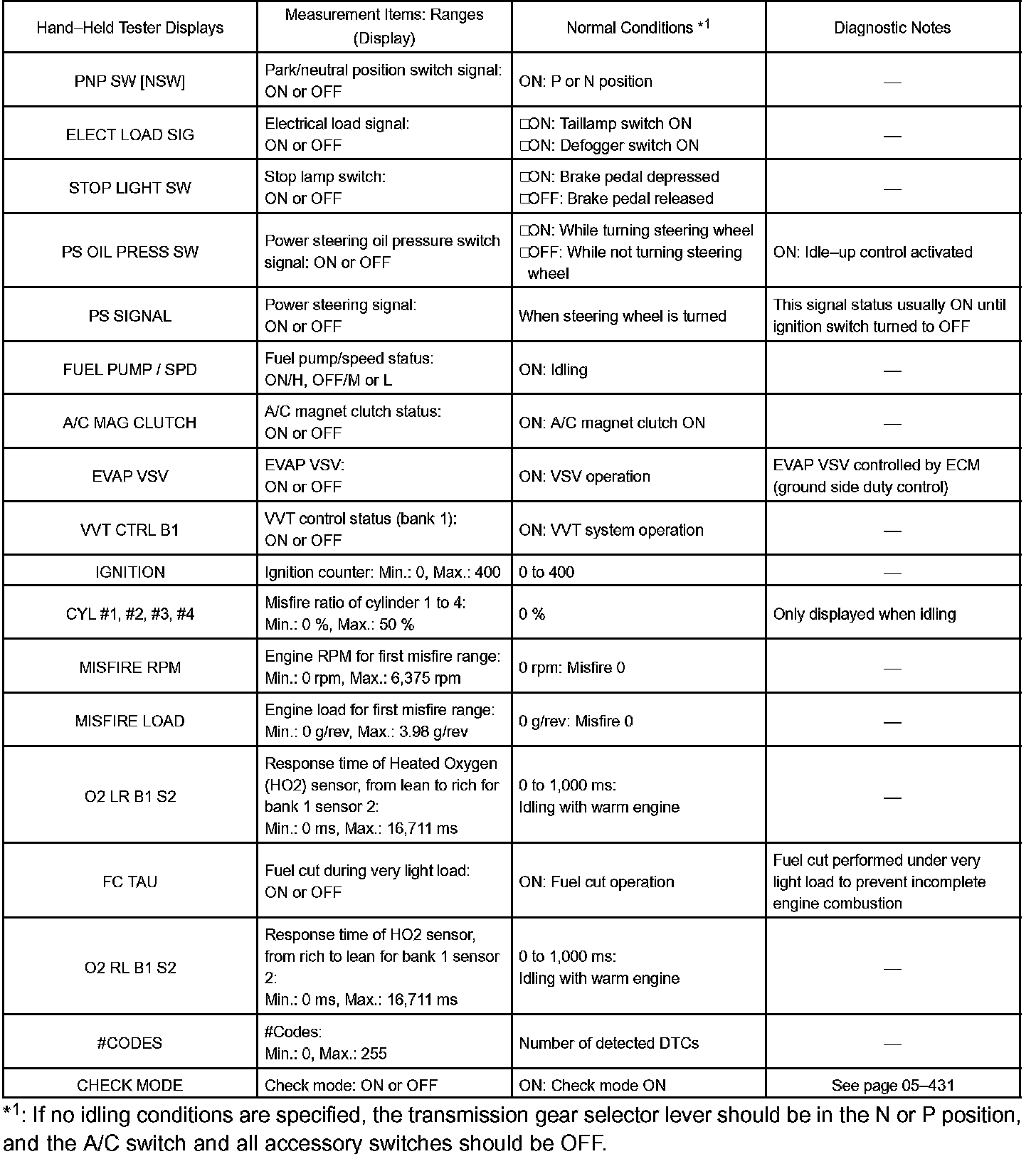 HINT: By reading the DATA LIST displayed on a hand-held tester or OBD II scan tool, you can check values, including those of the switches, sensors, and actuators, without removing any parts. Reading the DATA LIST as the first step of troubleshooting is one method of shortening diagnostic time.