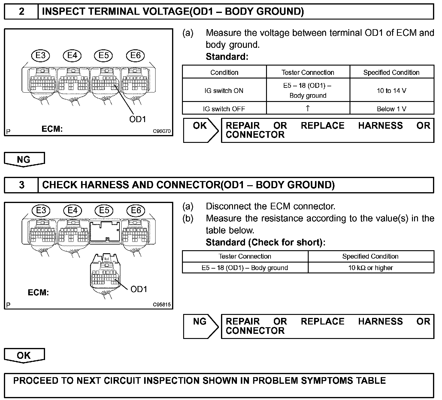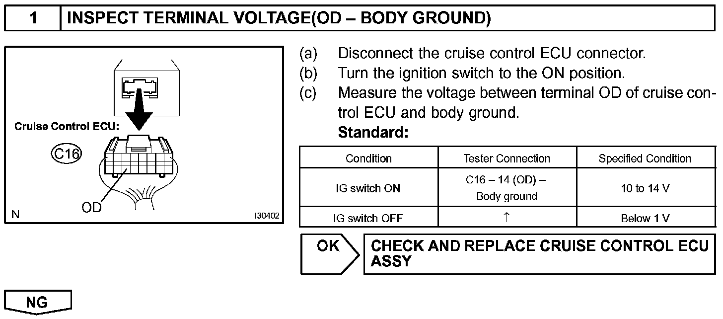 The cruise control ECU sends O/D cut signals to the ECM as necessary and the ECM cancels overdrive shifting until these signals are discontinued.