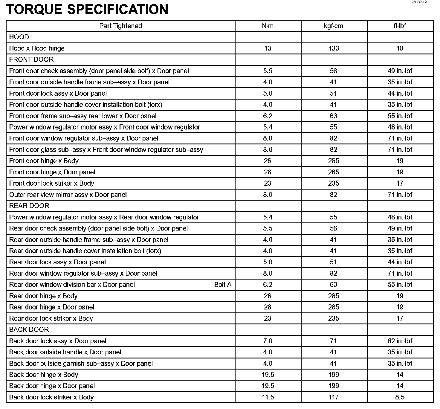 Engine Hood/Door - Torque Specification: