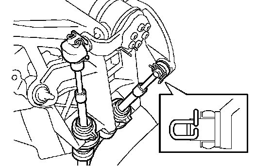 a. Remove the clip and disconnect the cable end of the select cable from the shift lever assembly.
