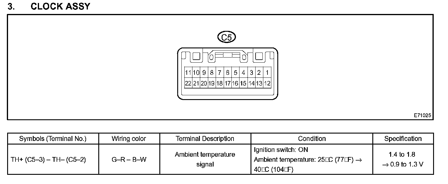 Terminals Of ECM/Pinouts - Clock Assy: